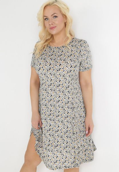 Sukienka Aganis o rozkloszowanym kroju mini z krótkim rękawem. Bez podszewki, elastyczny materiał zdobiony wzorem w kwiaty.