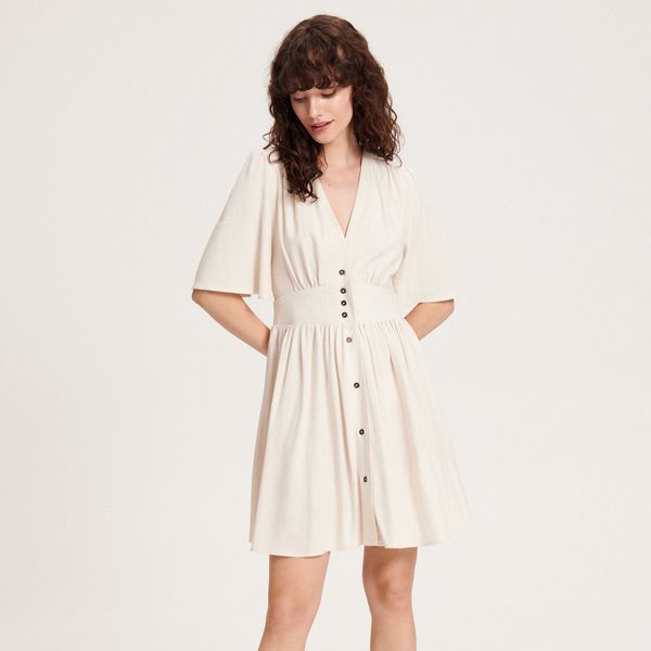 Sukienka mini z wiskozy – złamana biel
