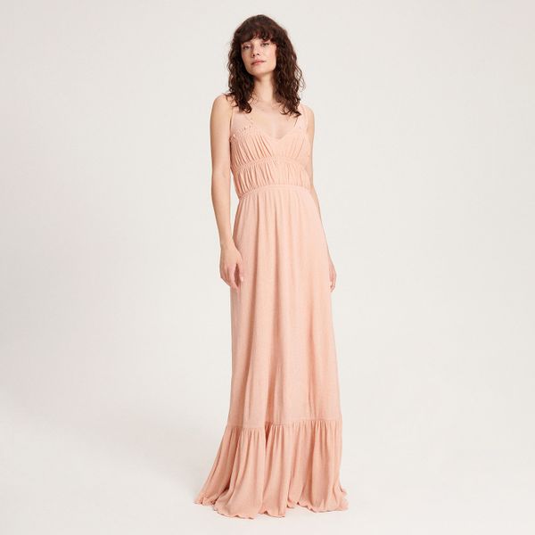 Sukienka maxi na ramiączkach – brzoskwiniowy