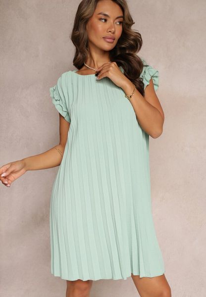 Jasnozielona Plisowana Sukienka Mini z Falbankami Trinida