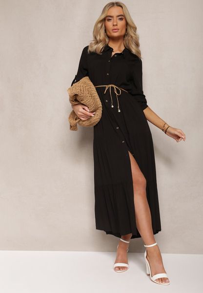 Czarna Koszulowa Sukienka Maxi z Bawełny Junira