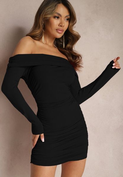 Czarna Sukienka Hiszpanka o Dopasowanym Fasonie z Marszczeniami Catrisa