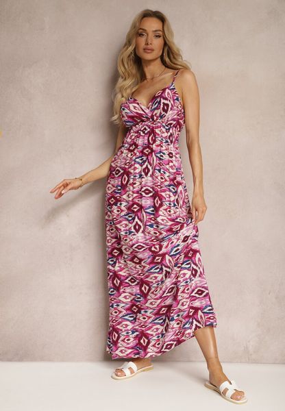 Fuksjowa Wiskozowa Sukienka z Dekoltem w Serek z Regulowanymi Ramiączkami i Gumką w Talii Bellastar