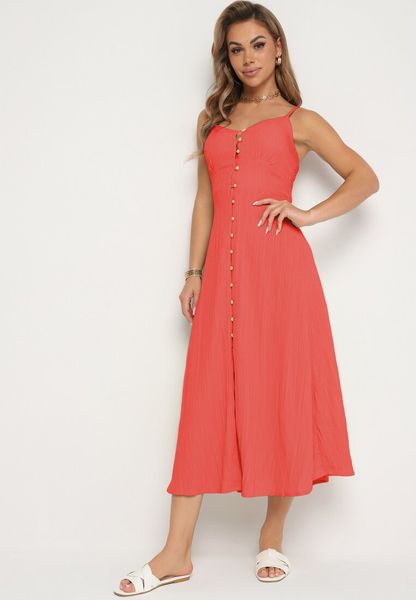 Czerwona Sukienka na Cienkich Regulowanych Ramiączkach Zapinana na Guziki Palfea