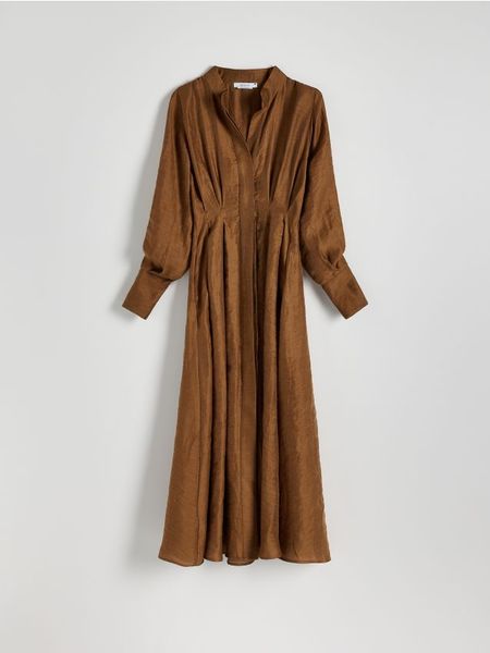 Sukienka maxi z dodatkiem lnu – ciemnobrązowy