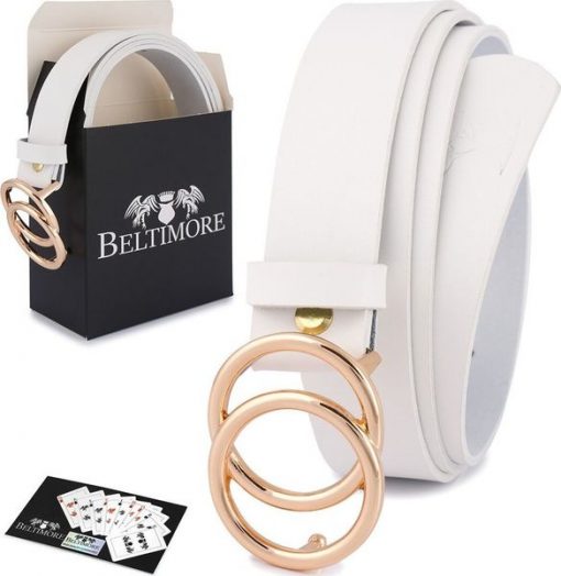 Beltimore Skórzany pasek damski do spodni sukienki koła klasyczny biały Beltimore B03 : Kolory – biały, Rozmiar pasków – r.80-95 cm NoSize