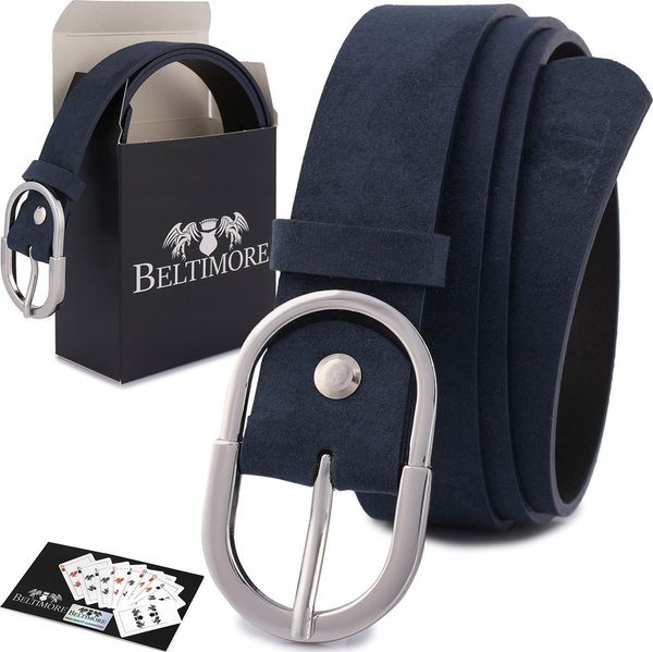 Beltimore Skórzany pasek damski do spodni sukienki granatowy skóra nat. zamszowa 3 cm Beltimore D98