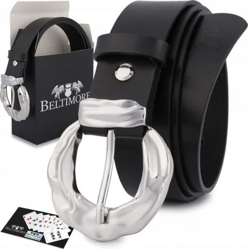 Skórzany pasek damski do spodni sukienki czarna skóra nat. 3,5 cm Beltimore B80
