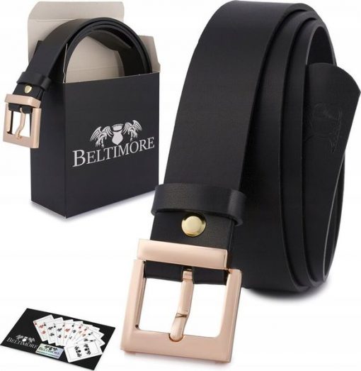 Beltimore Skórzany pasek damski do spodni sukienki czarna skóra nat 3 cm Beltimore D65 : Kolory – czarny, Rozmiar pasków – r.80-95 cm NoSize