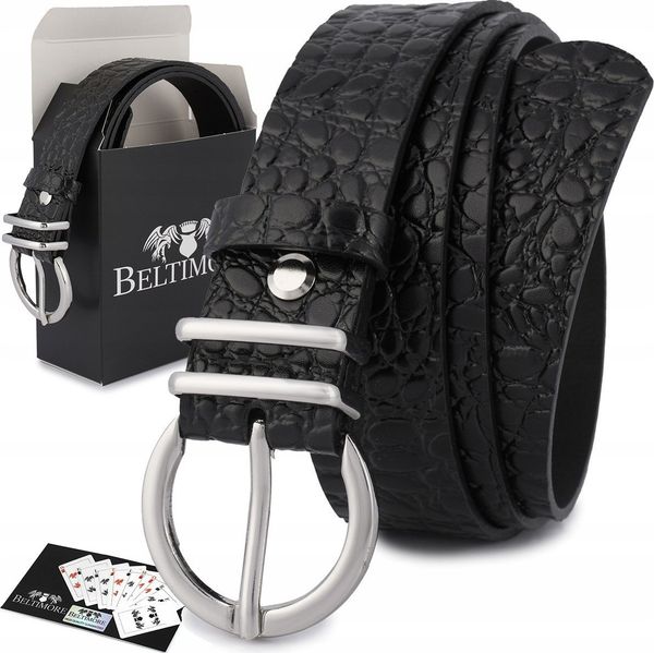 Beltimore Skórzany pasek damski do spodni sukienki skóra croco czarna 3 cm E54