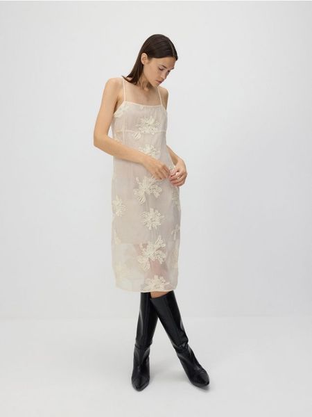 Sukienka z ozdobnym haftem – złamana biel