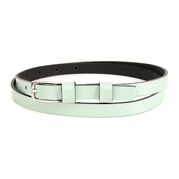 Pasek damski wąski solidny skórzany do sukienki miętowy S05 : Kolory – zielony, Rozmiar pasków – r.90-105 cm