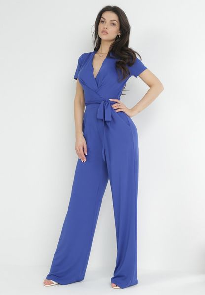 Jasnoniebieski Kombinezon z Kopertowym Dekoltem i Wiązaniem w Talii Vannessa