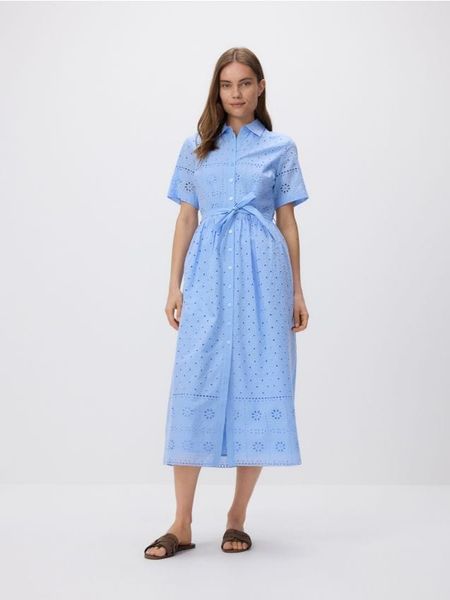 Koszulowa sukienka z ażurowym wzorem – jasnoniebieski