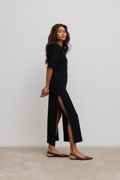 #html-body [data-pb-style=ODRHP8D]{justify-content:flex-start;display:flex;flex-direction:column;background-position:left top;background-size:cover;background-repeat:no-repeat;background-attachment:scroll}Sukienka wykonana z dzianiny waflowej w kolorze czarnym. Fason o luźnym kroju, dekolt półokrągły, krótkie rękawy. Sukienka po bokach ma dwa rozcięcia co nadaje maksymalny komfort podczas noszenia. Noś z ramoneską i trampkami tworząc sportowy look, czy też ze szpilkami w bardziej oficjalnej wersji. Gramatura dzianiny: 240g/m² Skład: 95% Bawełna, 5% Elastan