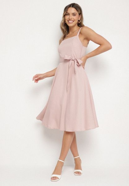 Różowa Sukienka z Wiskozą ze Wzorem Pasków Dolereia