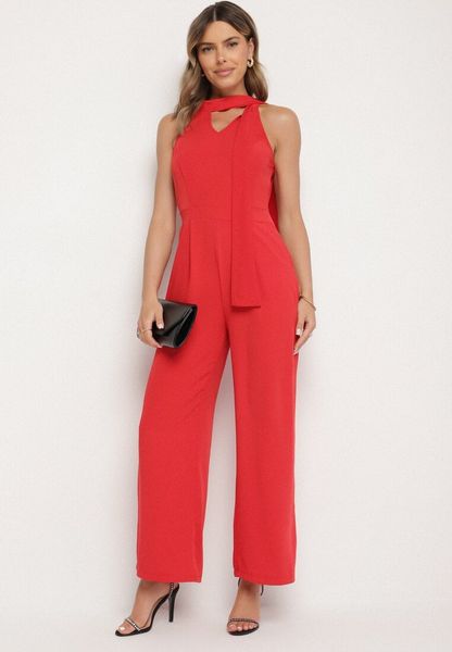 Czerwony Kombinezon Bez Rękawów z Ozdobnym Wiązaniem i Szerokimi Nogawkami Silarine