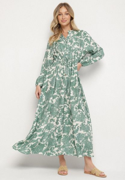 Zielona Rozkloszowana Sukienka z Wiskozą w Kwiatowy Wzór Filirelle