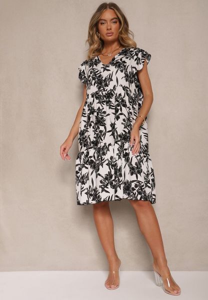 Biała Kwiatowa Rozkloszowana Sukienka z Bawełny Liravira