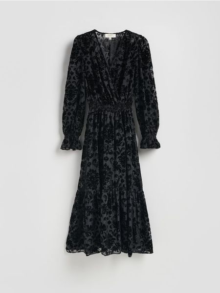 Sukienka o lekko rozkloszowanym kroju, wykonana z tkaniny z wiskozą.