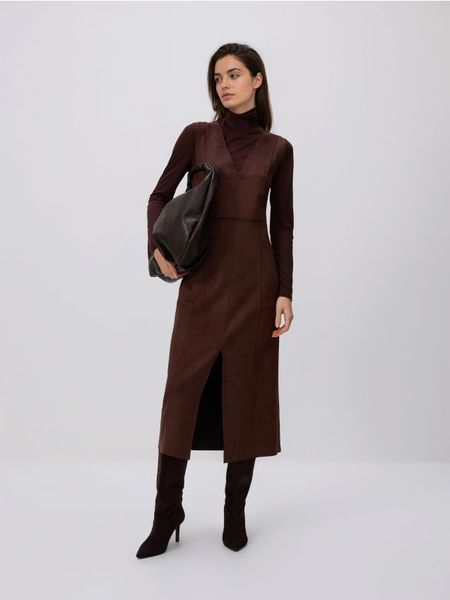 Sukienka z imitacji zamszu – brązowy