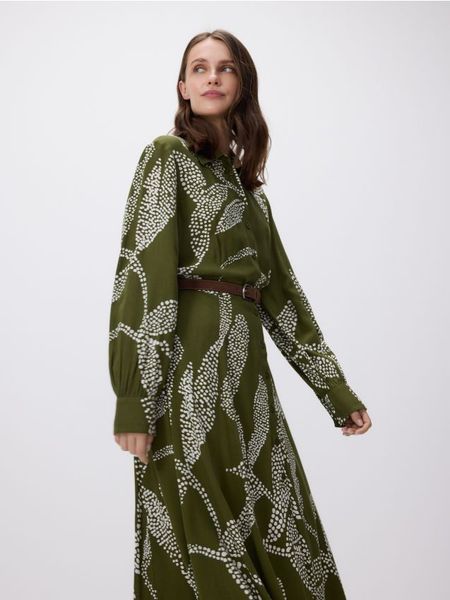 Sukienka o prostym kroju, wykonana z tkaniny z wiskozy.