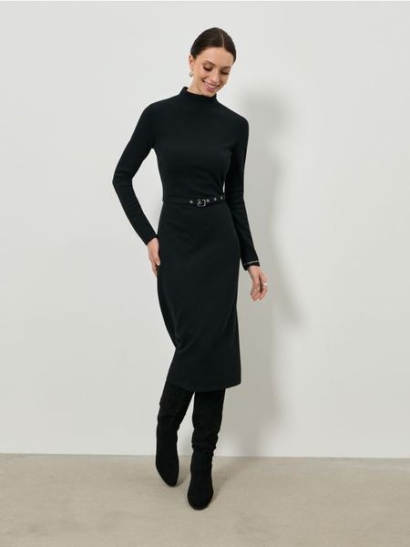 Sinsay – Sukienka midi z bawełną i ozdobnym paskiem – czarny –