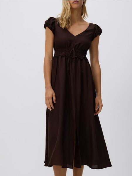 Sukienka o lekko rozkloszowanym kroju, wykonana z wiskozy z dodatkiem lnu.