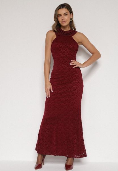 Bordowa Asymetryczna Sukienka z Falbaną Nawedina