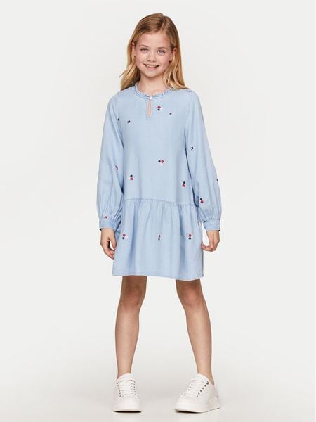 Tommy Hilfiger Sukienka codzienna Broderie Anglaise KG0KG07779 D Niebieski Regular Fit