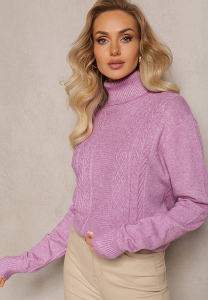 Fioletowy Golf z Dzianiny Ozdobiony Splotem z Długimi Rękawami i Ściągaczami Juniro