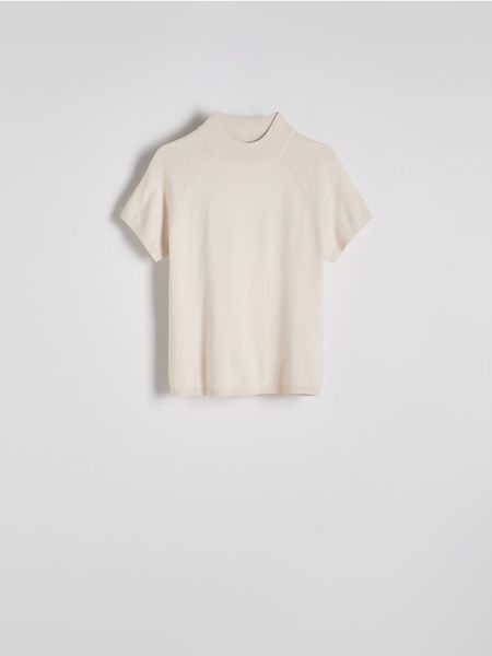 Sweter o prostym kroju, wykonany z dzianiny z wiskozą.