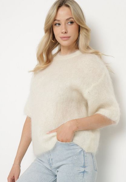 Jasnobeżowy Moherowy Sweter o Kroju Nietoperza z Rękawami 3/4 Eleanira