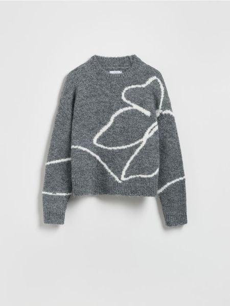Sweter o prostym kroju, wykonany z dzianiny z domieszką wełny.