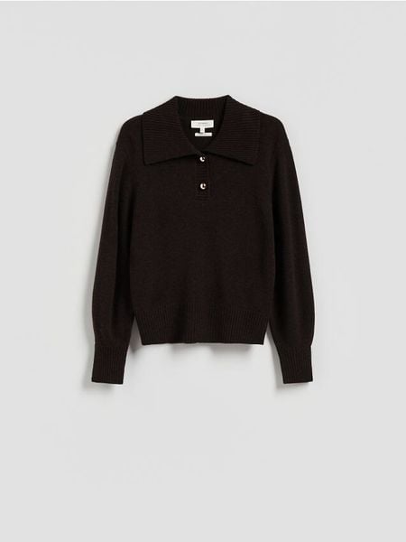 Wełniany sweter z kołnierzem – ciemnobrązowy