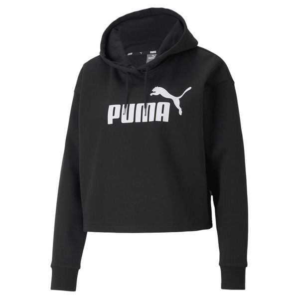 Damska bluza o skróconym kroju z kapturem z logo Essentials PUMA Black