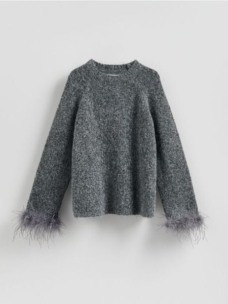 Sweter z ozdobnym detalem – szary