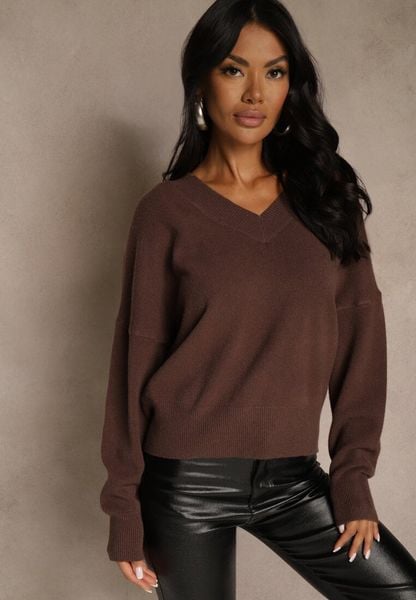Brązowy Klasyczny Sweter z Wiskozą i Kaszmirem Marirra