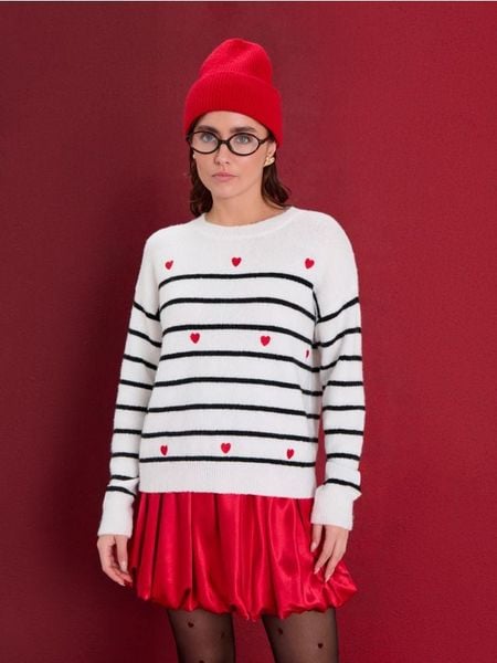 Sinsay – Sweter w paski i serca – biały –