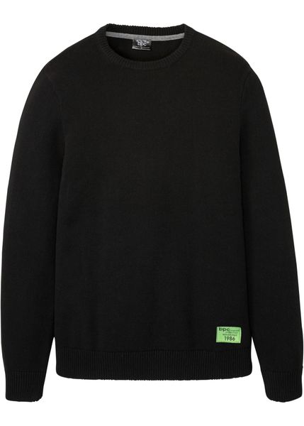 Atrakcyjny sweter w stylu basic z okrągłym dekoltem i małą naszywką w dolnej części, nadaje się do prania w pralce.