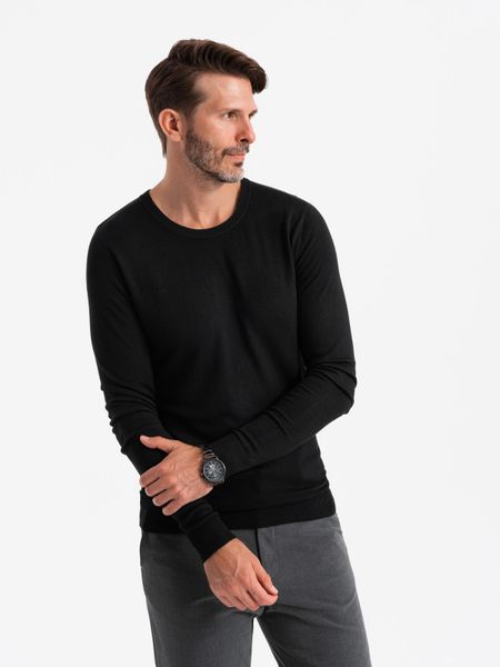 Męski klasyczny sweter z wiskozą BASIC z okrągłym dekoltem – czarny V2 – Rozmiar: L