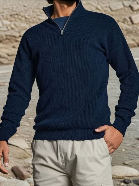 Prążkowany sweter – granatowy