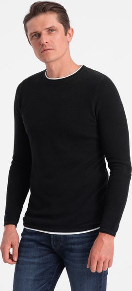 Ombre Bawełniany sweter męski z okrągłym dekoltem – czarny V1 OM-SWSW-0103 XL