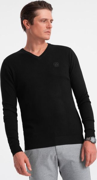 Ombre Elegancki sweter męski z dekoltem w serek – czarny V1 OM-SWBS-0107 L