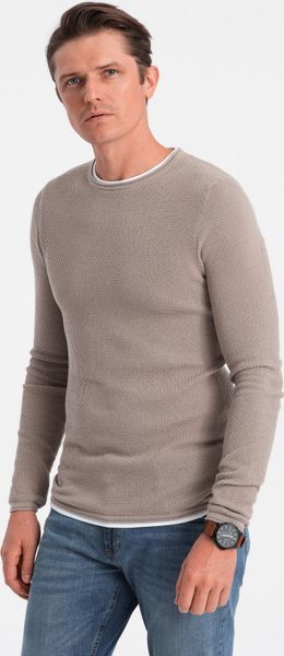 Ombre Bawełniany sweter męski z okrągłym dekoltem – zimny beż V9 OM-SWSW-0103 S