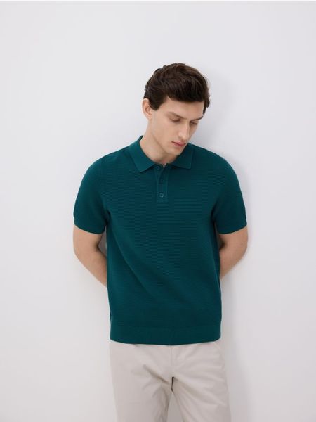 Sweter typu polo o prostym kroju, wykonany z dzianiny z wiskozą.