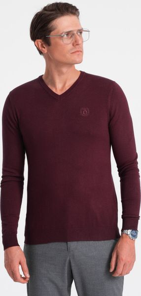 Ombre Elegancki sweter męski z dekoltem w serek – bordowy V13 OM-SWBS-0107 L
