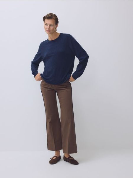 Sweter o luźnym kroju, wykonany z dzianiny z domieszką kaszmiru.