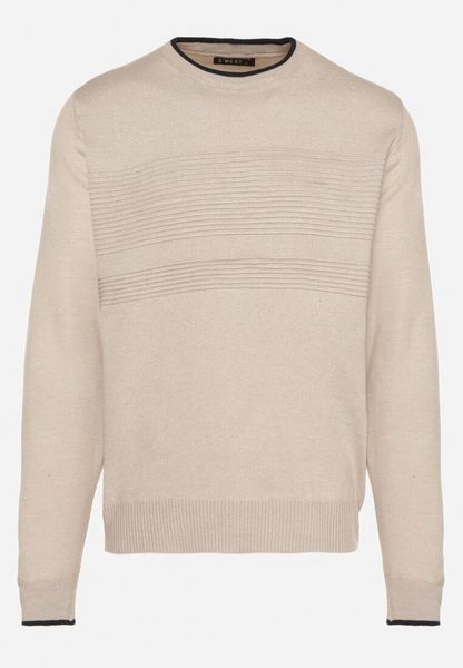 Sweter męski z okrągłym dekoltem z elastycznej dzianiny o klasycznym splocie - beżowy V3 - Rozmiar: XL