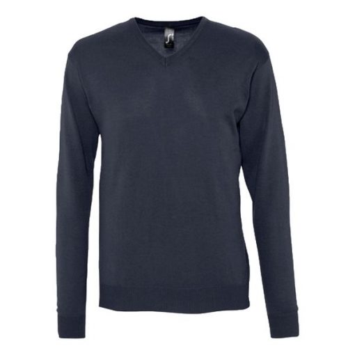Granatowy Bawełniany Sweter o Klasycznym Kroju z Dekoltem w Serek Amivorra